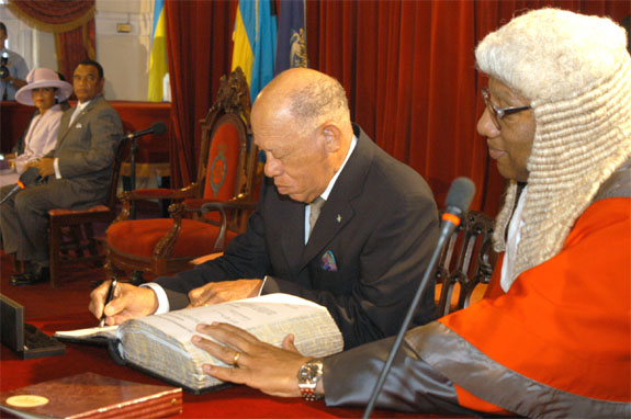 Arthur D. Hanna signs the Oath in the Oath Book as Chief Justice Sir