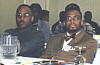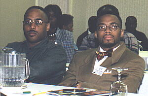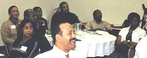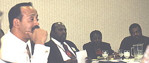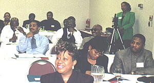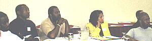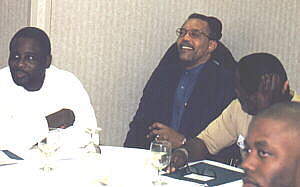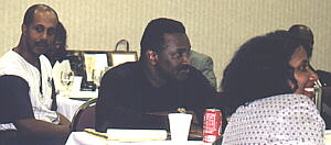 Discovering The Opportunities Quinn Golden well known Rhythm & Blues singer and recording star sits and intently listens to the presentation on the business aspects of the Music industry. Quinn introduced the group to his newest album and to some of the music and artists that he recently produced. Quinn has a long and succesful history of recordings and performances with many of the top Rythm & Blues artists all over the world. His latest Album "Cover You With A Kiss" has gained raved reviews and is climbing the charts with a bullet. Click here to listen to some of the music from the album. |