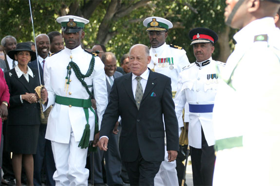 past the Royal Bahamas Defence Force Guard of Honour after an
